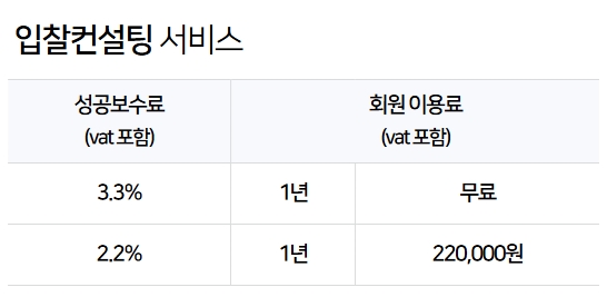 입찰컨설팅 서비스 비용은 다음과 같습니다.